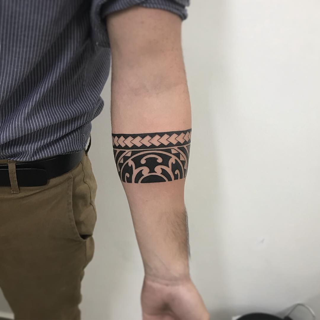 武汉长江楚韵搞建材的晏先生小臂玛雅图腾臂环纹身图案